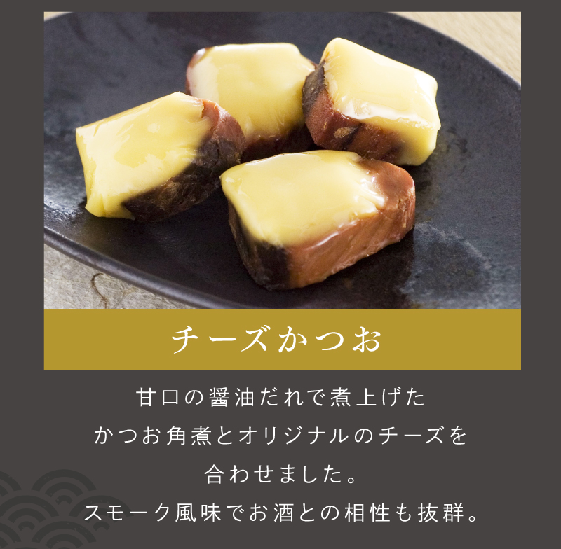 - かつお(国産)、乳等を主要原料とする食品(ナチュラルチーズ、還元水飴、ショートニング、ゼラチン)、砂糖、醤油、還元水飴、米発酵調味料、寒天/乳化剤