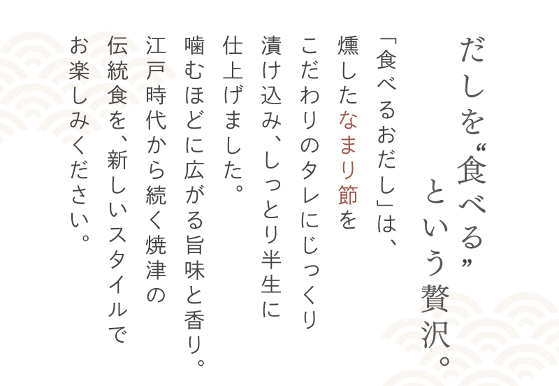 - かつお(国産)、砂糖、醤油、発酵調味料、還元水飴、かつお節調味液、昆布調味液、酵母エキス、食塩