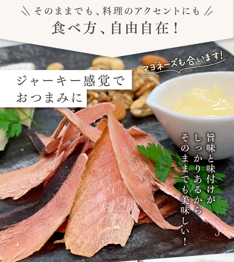 - まぐろ、砂糖、醤油、発酵調味料、還元水飴、かつお節調味液、食塩、昆布調味液、黒胡椒、酵母エキス