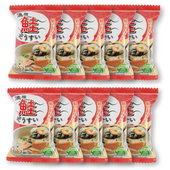 全原材料 | 米(国産)、鶏卵、ほうれん草、紅さけ、しろしょうゆ加工品(白だし)(合わせだし(かつおかれぶし削り、あじぶし削り、そうだがつおぶし削り、まぐろぶし削り、乾しいたけ)、有機しろしょうゆ、水飴、小麦酵素分解液、食塩、その他)、食塩、でん粉、デキストリン、ごま、酵母エキス/調味料(アミノ酸等)、酸化防止剤(ビタミンE)、カロチン色素、(一部に小麦・卵・ごま・さけ・大豆を含む) |