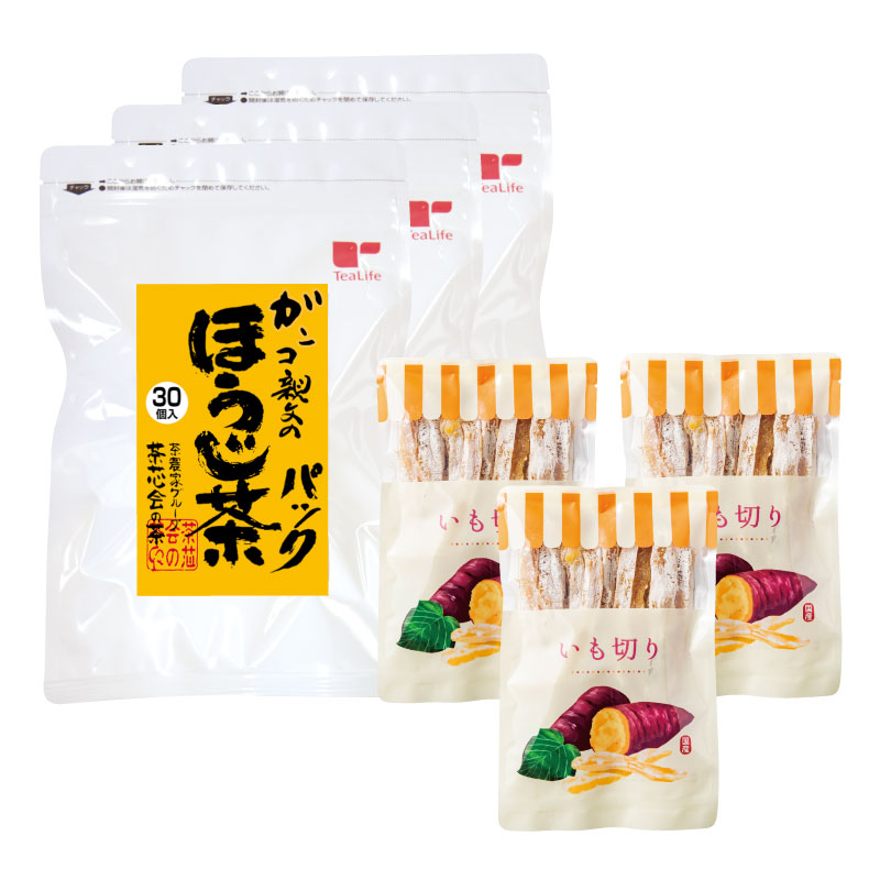 【予約】ガンコ親父のほうじ茶パック3袋+いも切り3袋セット