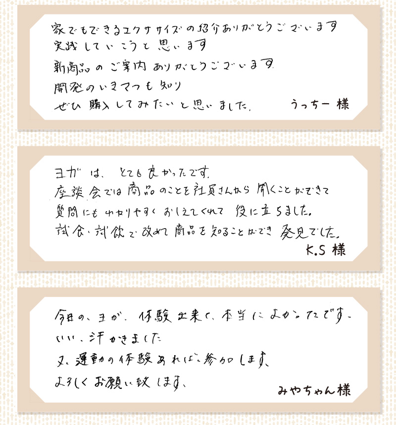 初心者の方も簡単に取り入れやすいヨガや、おなか周りに効くポーズなどを講師の方に教えていただきました。具体的なポーズやレッスンの詳細は、2026年の春先に発行予定の「さらら」カタログやWEBサイトでご紹介する予定ですので、どうぞお楽しみに!